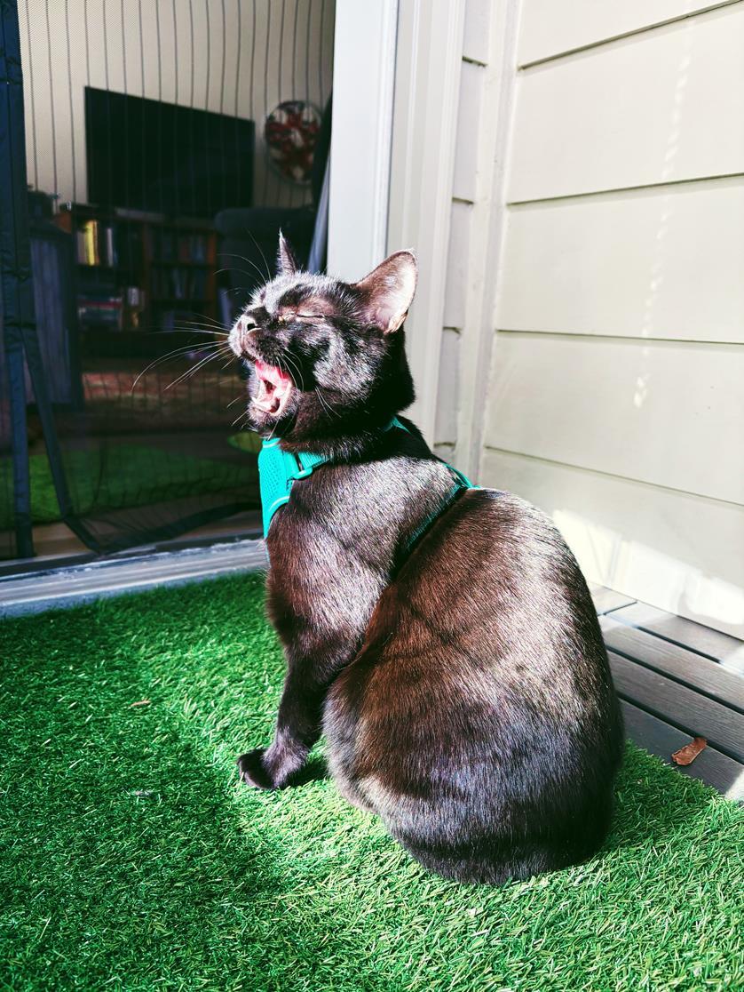 A true neighborhood explorer, Tobio lives by a strict code: no smell is left unsniffed. When she isn't busy investigating every scent Kearney Plaza has to offer, you can find her perched by the window, intently watching the local crows roosting in the trees. While she famously turns up her nose at traditional soft beds (human or pet!), she has a refined taste for unconventional luxury—frequently choosing coats, sunhats, and backpacks as her preferred nap spots. Don't let her "bad girl" playlist fool you, though; she’s a professional cuddler who recently set a personal lap-nap record of five hours in a single session. If you see Tobio out and about this month, be sure to wish her a very happy 2nd birthday!