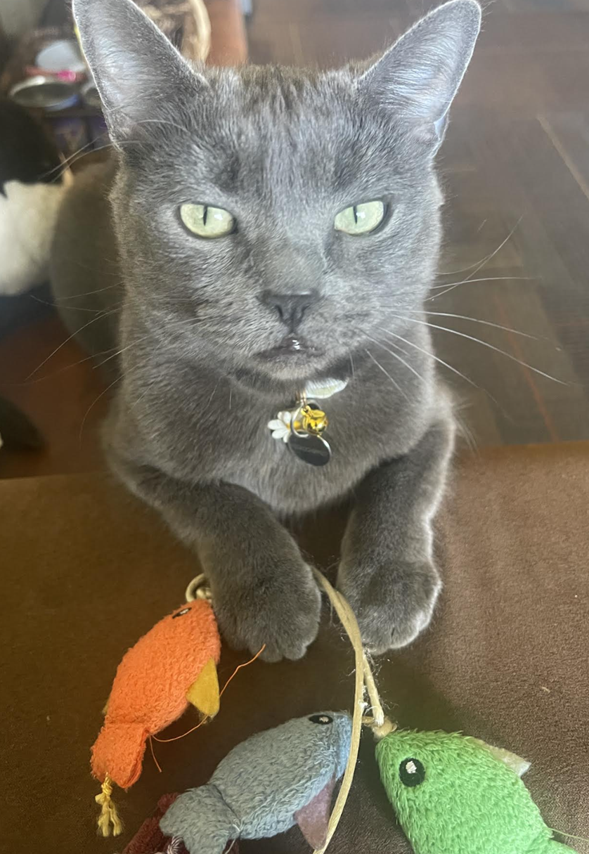 Minccino is a local legend known for her high-energy antics. She absolutely loves chasing toys, but her favorite activity is dragging her beloved fishy wand all around the apartment to make sure everyone knows it's playtime. Whether she’s on the hunt or just lounging like royalty, Minccino brings so much life to Kearney Plaza.